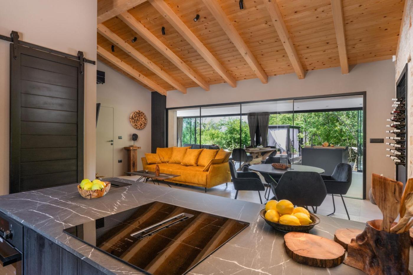 Willa z 2 sypialniami. The hot tub and spa bath are the standout features of this villa. Boasting a private entrance, this air-conditioned villa comes with a kitchen, 2 bedrooms and 1 bathroom with a walk-in shower and a bath or a shower. Guests will find a stovetop, a refrigerator, a dishwasher and kitchenware in the fully equipped kitchen. The villa also includes a barbecue. The unit has a tea and coffee maker, garden views, a terrace and winechampagne is available for guests. The unit has 2 beds. Willa - 4 osobowy. Powierzchnia pokoju ok.: 110 mkw.