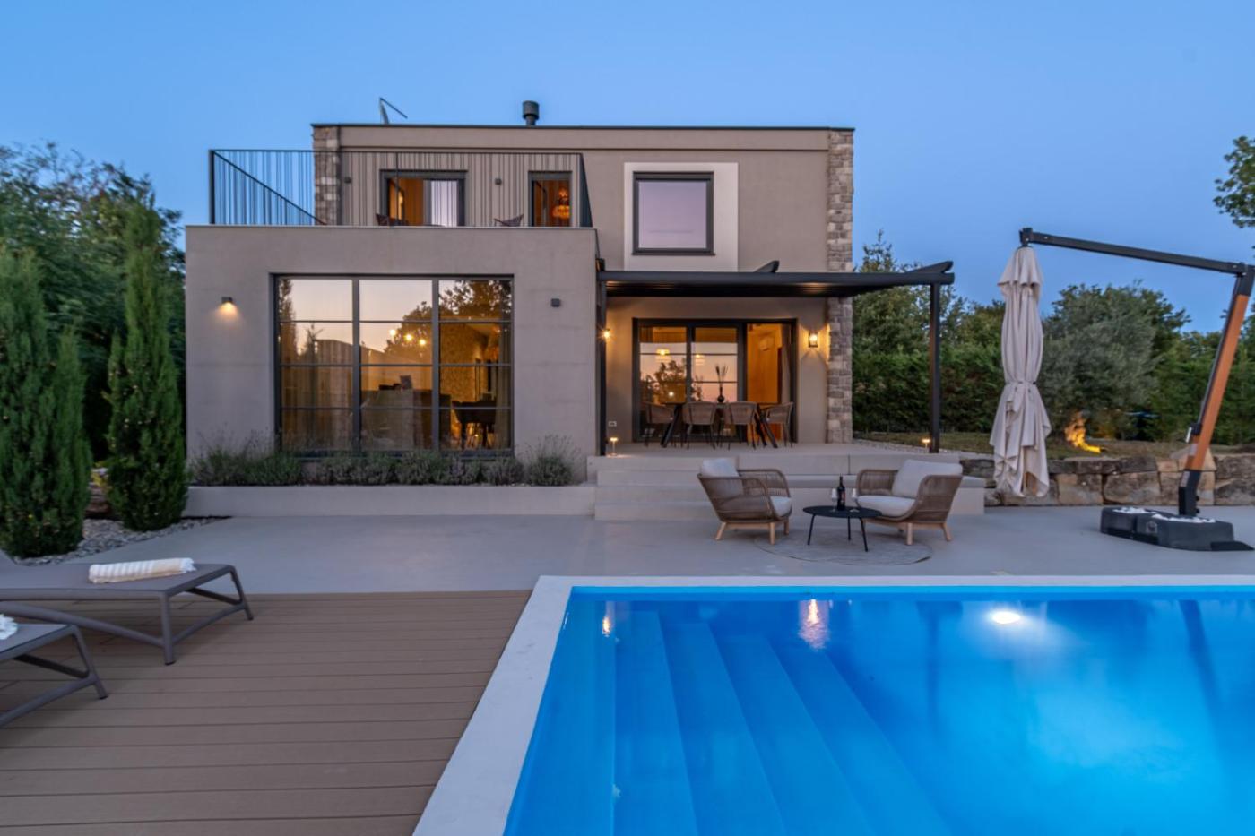 Obiekt Casa San Verde Hill, położony w miejscowości Novaki Motovunski, oferuje bezpłatne Wi-Fi, klimatyzację oraz odkryty basen. Odległość ważnych miejsc od obiektu: Park wodny Istralandia – 31 km, Kościół św. Eufemii w Rovinju – 47 km. Oferta willi obejmuje prywatny basen, ogród oraz bezpłatny prywatny parking.