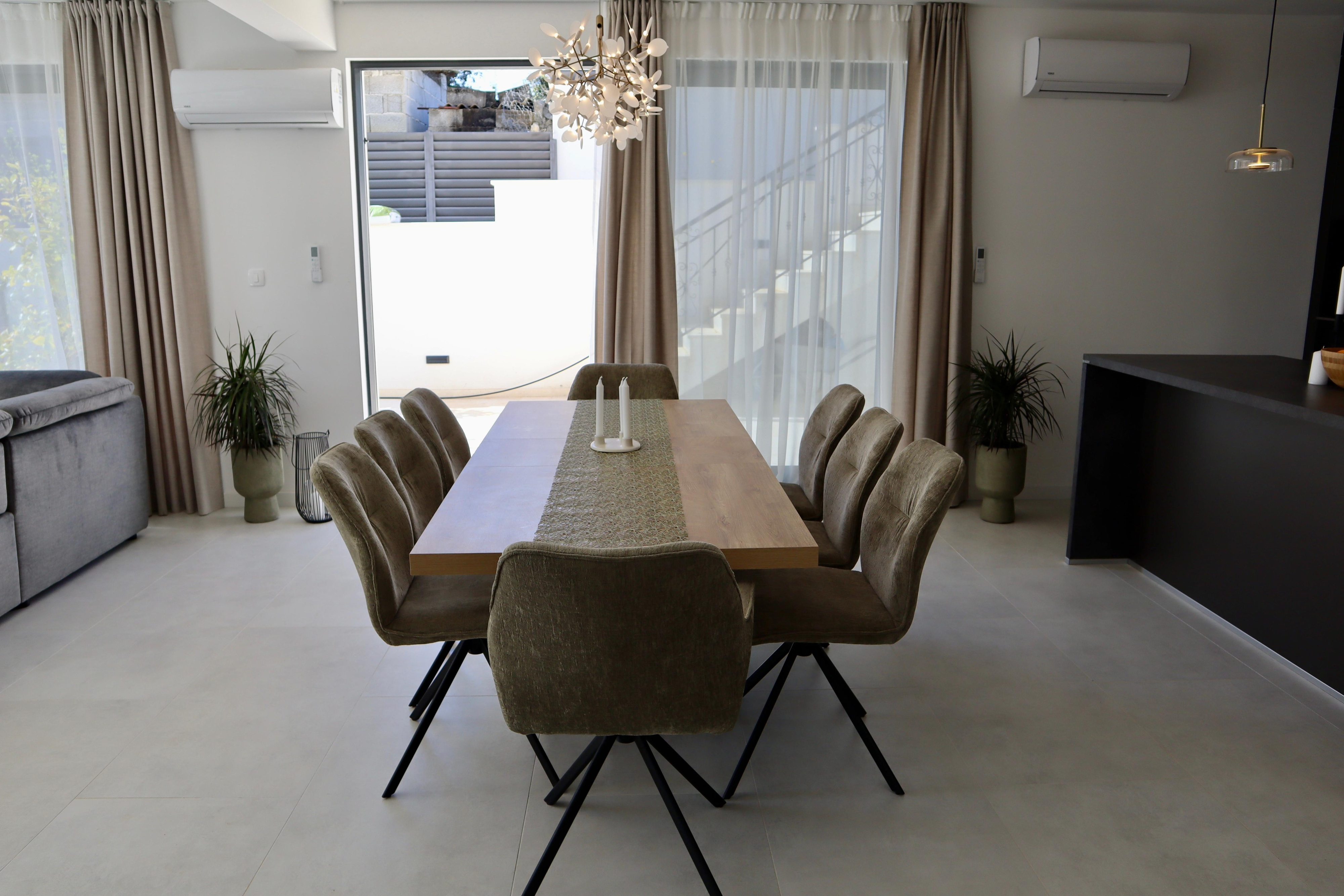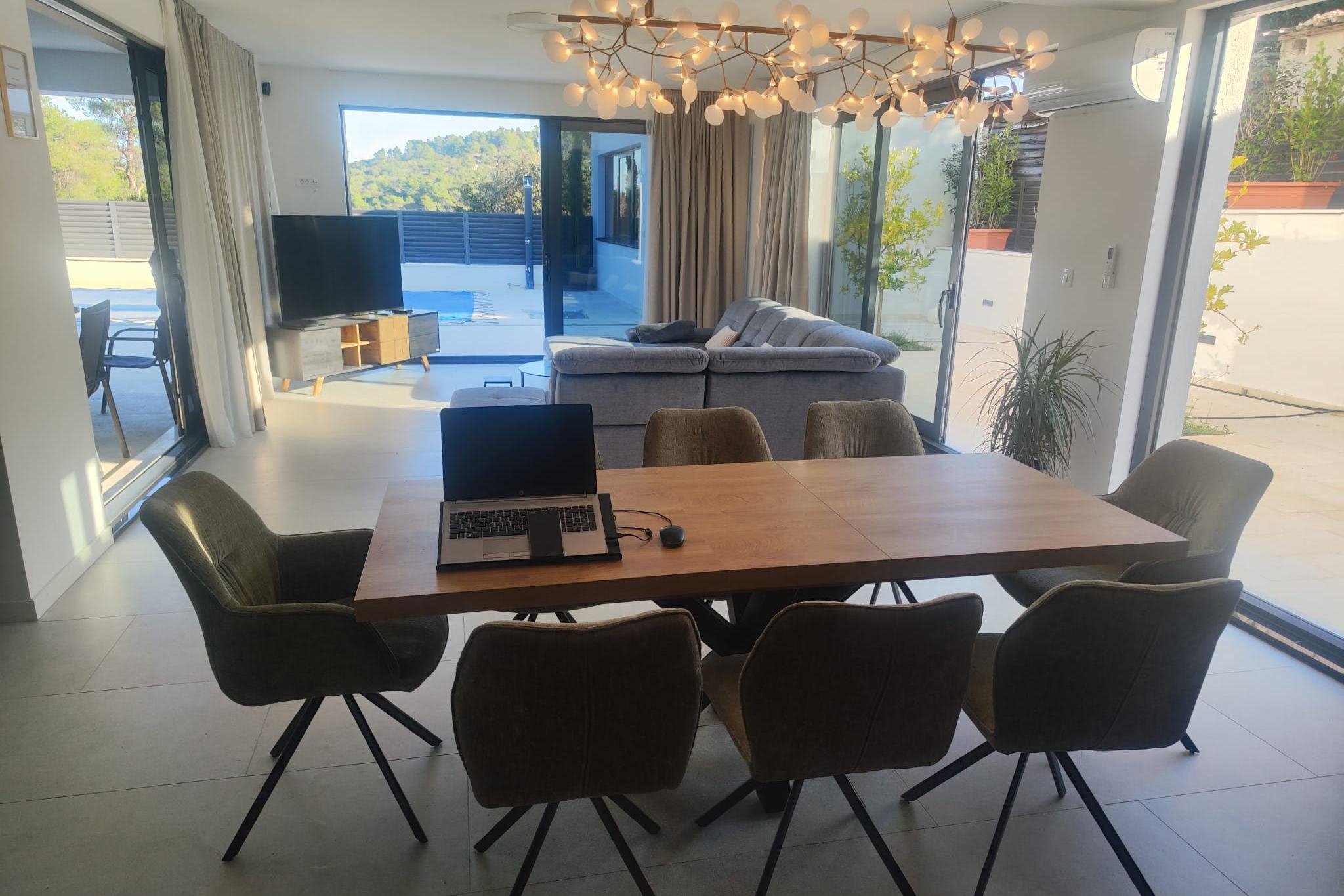 Dom może przyjąć 10 gości. Łóżka znajdują się w sypialniach, których jest 4, oraz w pokoju dziennym, na powierzchni 196m2. Goście mają dostęp do tarasu, by korzystać z ciepłych, letnich wieczorów. Z domu wakacyjnego roztacza się widok na morze. Możliwość przygotowywania posiłków poprzez korzystanie ze wspólnego grilla. W trakcie swojego pobytu goście mogą korzystać ze wspólnego basenu. WLICZONE W CENĘ: taksa pobytowa, sprzątanie końcowe, klimatyzacja, basen, parking, internet, rower, łóżeczko dziecięce, dostawka, żelazko, deska do prasowania, suszarka do włosów, przenośny grill. NIEOBOWIĄZKOWE KOSZTY DODATKOWE: pranie bielizny (150,00 € pranie). Dostępność dodatkowych usług w rezerwowanym terminie oraz ich cenę (jeśli nie jest podana) należy sprawdzić wcześniej. Za dodatowe usługi, które nie zostały uwzględnione w kalkulacji ceny, płaci się bezpośrednio właścicielowi obiektu, pod warunkiem śe gość korzysta z tych usług.